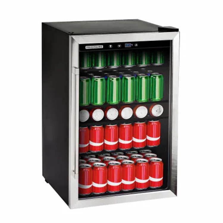 The unit features a black painted finish for a modern look and uses R134A refrigerant with a power-efficient system, making it a reliable solution for chilling bottled or canned beverages.